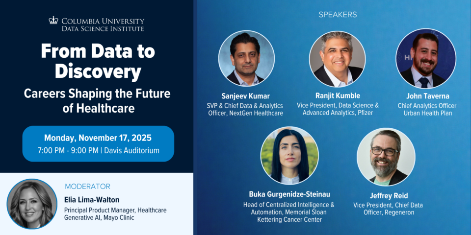 Explore how data science and AI are reshaping healthcare, from diagnosis and treatment to system operations and innovation. This session will examine the challenges and opportunities of working with sensitive health data and how leading professionals are balancing ethics, privacy, and equity with technological advancement. Experts from healthcare, pharmaceuticals, and biotechnology will join the conversation to share insights on delivering better outcomes and new models of care.
