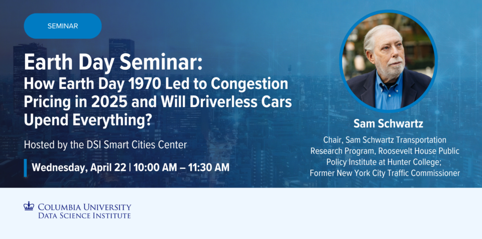 Smart Cities Earth Day Seminar: How Earth Day 1970 Led to Congestion Pricing in 2025 and Will Driverless Cars Upend Everything? Wednesday, April 22, 202610:00 am - 11:30 am Register